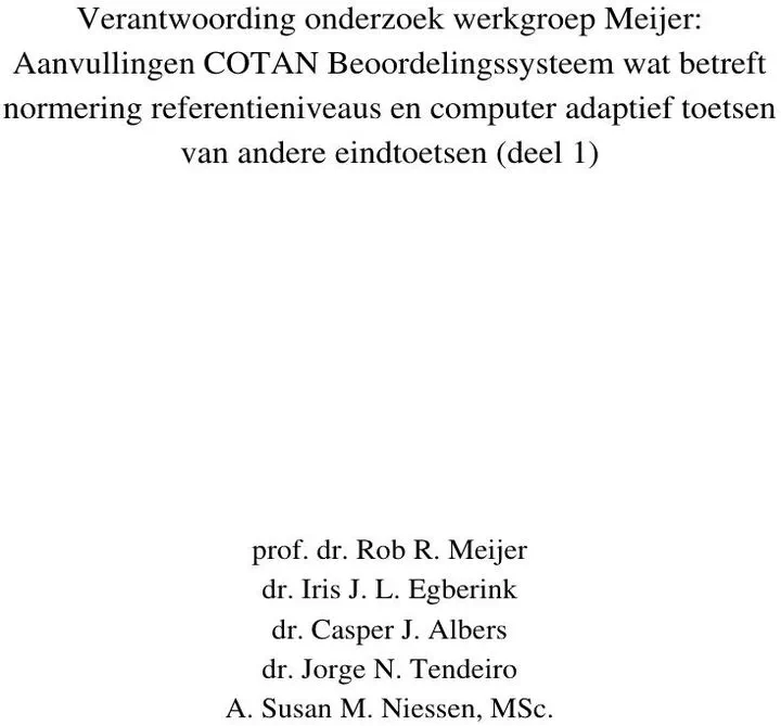 Verantwoording onderzoek werkgroep Meijer: Aanvullingen COTAN Beoordelingssysteem wat betreft normering referentieniveaus en computer adaptief toetsen van andere eindtoetsen (deel 1)