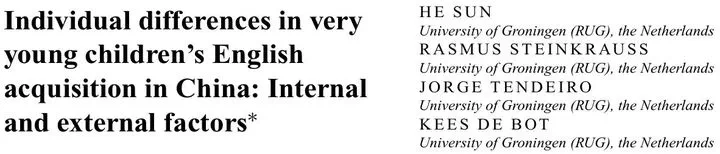 Individual differences in very young children's English acquisition in China: Internal and external factors