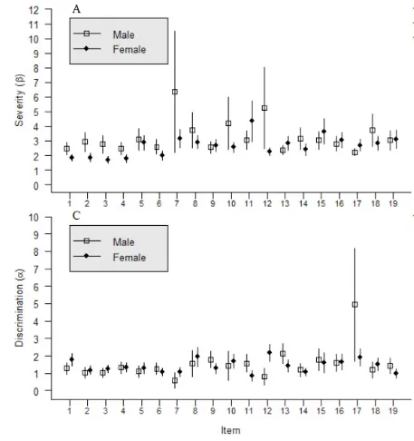 Functional Somatic Symptoms (FSS) are physical symptoms that cannot be attributed to underlying pathology. Their severity is often measured with sum-scores on questionnaires; however, this may not adequately reflect FSS severity in subgroups of patients. We aimed to identify the items of the somatization section of the Composite International Diagnostic Interview that best discriminate FSS severity levels, and to assess their functioning in sex and age subgroups. We applied the Two Parameter Logistic Model to 19 items in a sample of 962 participants from the Prevention of Renal and Vascular End Stage Disease study. Subsequently, we examined Differential Item Functioning (DIF). ‘Localized (muscle) weakness’ was the most discriminative item of FSS severity. ‘Abdominal pain’ consistently showed DIF by sex, with males reporting it at higher FSS severity. There was no consistent DIF by age, however, ‘joint pain’ showed poor discrimination of FSS severity in older adults. Clinicians and researchers could give differential attention to these symptoms when assessing FSS.