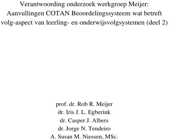 Verantwoording onderzoek werkgroep Meijer: Aanvullingen COTAN Beoordelingssysteem wat betreft volg-aspect van leerlingen onderwijsvolgsystemen (deel 2)