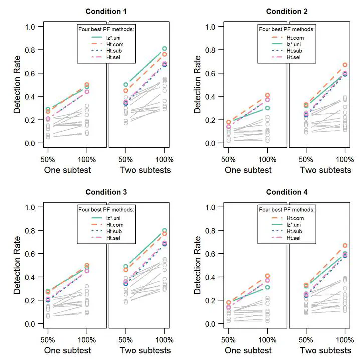 While an admission test may strongly predict success in university or law school programs for most test takers, there may be some test takers who are mismeasured. To address this issue, a class of statistics called person-fit statistics is used to check the validity of individual test scores. However, most person-fit statistics are designed for a single test, and not much is known about the performance of these statistics for admission tests consisting of multiple highly correlated subtests. In this study, the performance of a number of person-fit statistics was evaluated based on data that simulated aberrant responding on highly correlated subtests. The results indicated that two of the statistics outperformed the others.